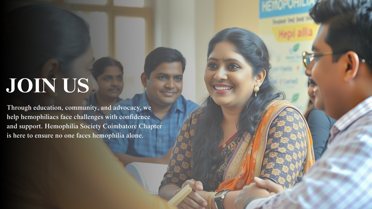 Hemophilia Society Coimbatore Chapter, established on May 7- 1995, is a dedicated community supporting individuals with hemophilia and similar bleeding disorders. As part of the Hemophilia Federation India and the World Federation of Hemophilia, we work tirelessly to provide accessible, affordable care and build awareness.